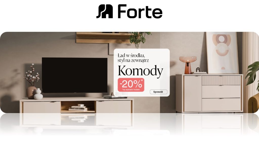 Wybrane komody FORTE z rabatem do –20% ! W dniach 19.03–13.04.2026 skorzystaj z atrakcyjnych rabatów na wybrane meble Forte. W ofercie promocyjnej dostępne są: Szczególną uwagę warto zwrócić na kolekcję Aksana, oferowaną obecnie ze zniżką aż 40%. Promocja na kolekcję Aksana trwa od 19.02 do 30.04.2026 r. To doskonały moment, aby wybrać meble idealnie dopasowane do Twojej przestrzeni i stylu – teraz w wyjątkowo korzystnych cenach. 📅 Promocja ograniczona czasowo do 13.04.2026